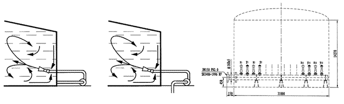 GP系列罐用喷射式混合器,在大型贮存罐中的作用尤为显著,其安装方位如图所示。